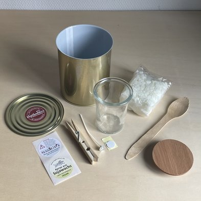 Immer dabei ist das Schmelzgefäß, Rührlöffel, Dochte, Klebepunkte und Dochthalter, Etiketten und eine Anleitung. Somit ist alles dabei, was man braucht, und Ihr könnt sofort loslegen.